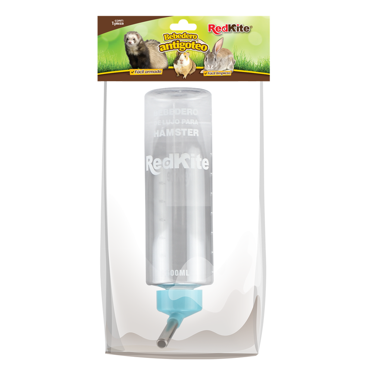 - Bebedero Antigoteo 500 ML. Perfecto para pequeños mamíferos. Plástico resistente y boquilla de metal. ¡Agua limpia y sin derrames!